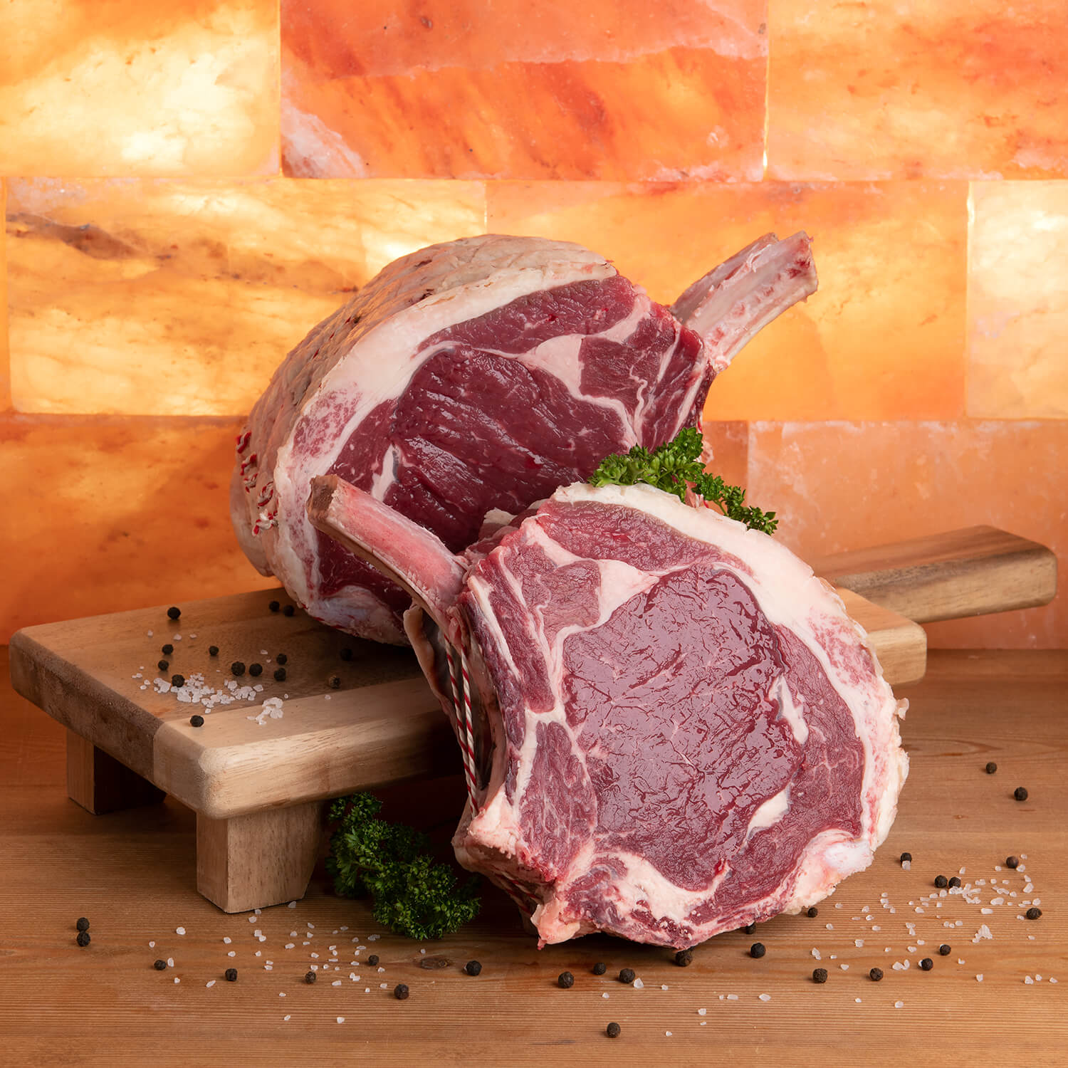 Fore Rib of Beef has been aged in an authentic Himalayan salt chamber, built from bricks of salt, which concentrates the flavour of the meat to an intense degree and gives it a special taste and tenderness.